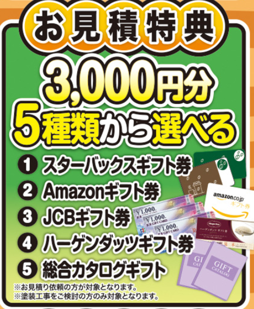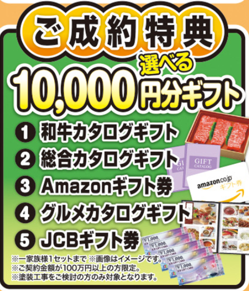ご成約をいただいた方にはなんと10,000円分ギフトをお渡しします!