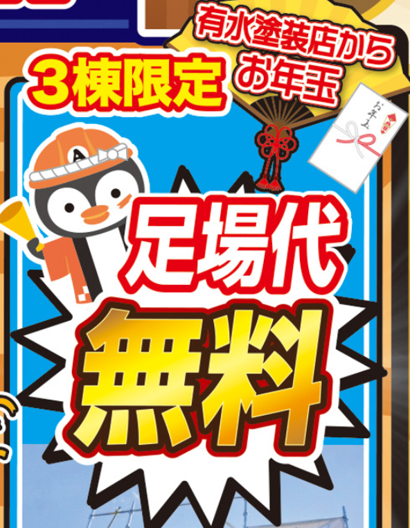 最後に有水塗装店からのお年玉で足場代無料にしちゃいます!!