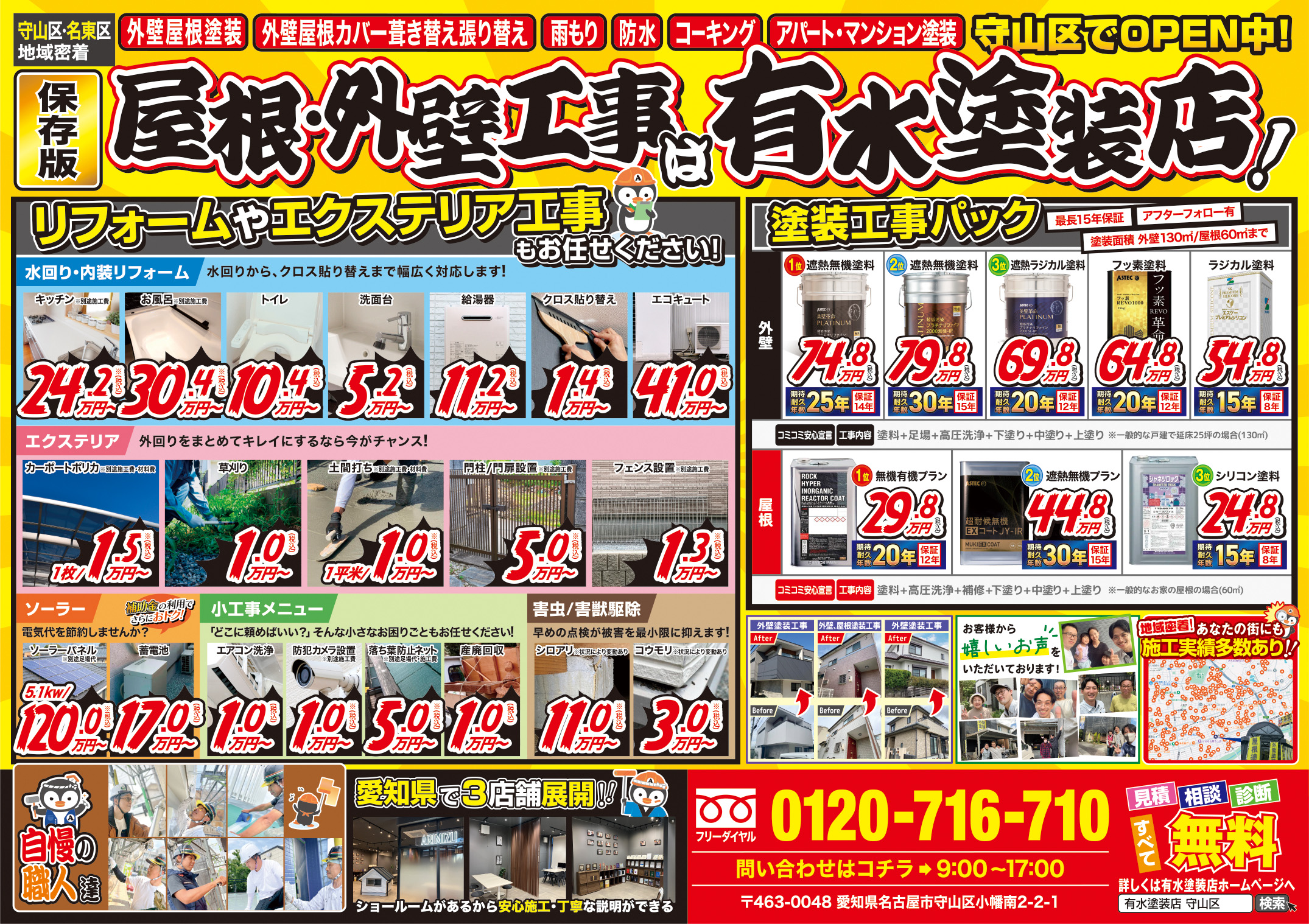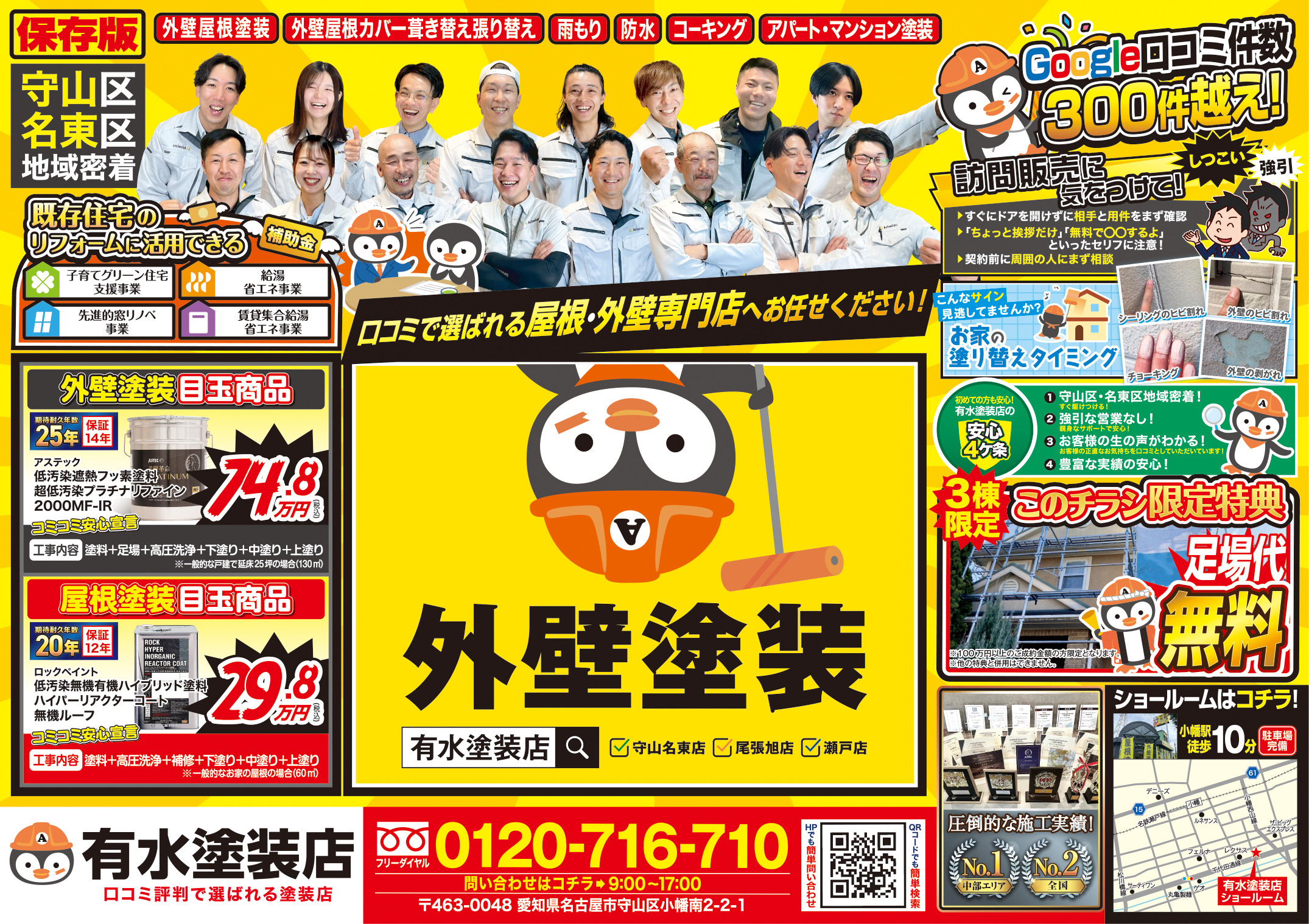 名古屋市守山区・名古屋市名東区を中心に、品質保証の外壁塗装・屋根塗装・雨漏り工事をご提供しております!!