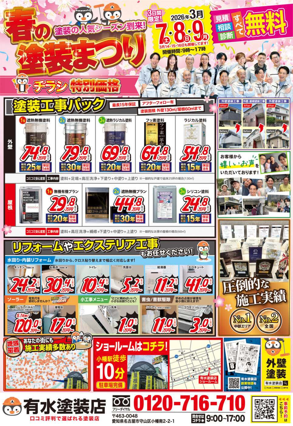 外壁塗装のご質問等がございましたらお気軽に名古屋市守山区・名古屋市名東区 外壁塗装専門店有水塗装店へお問い合わせください。