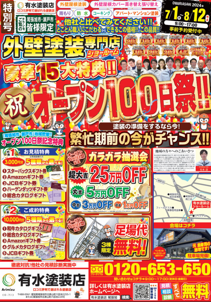 現在、有水塗装店ではキャンペーンを行っております