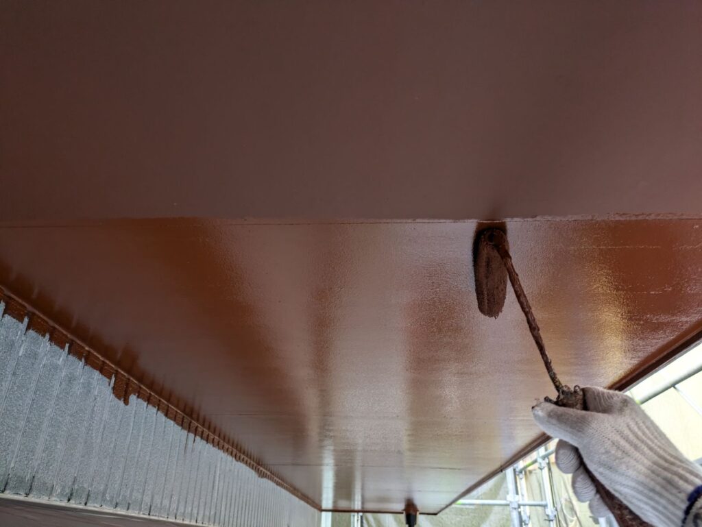 外壁と同様に3回塗りを行います。屋根は外壁よりも厳しい環境にさらされるため、より高耐久な塗料が使用されます。