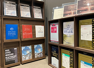 数十種類ある塗り板やパソコン、iPadを使い、お客様が塗装をイメージできるショールームとなっております。