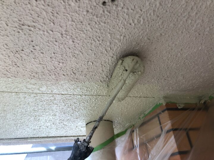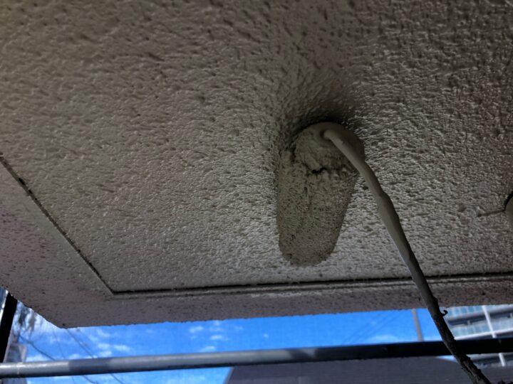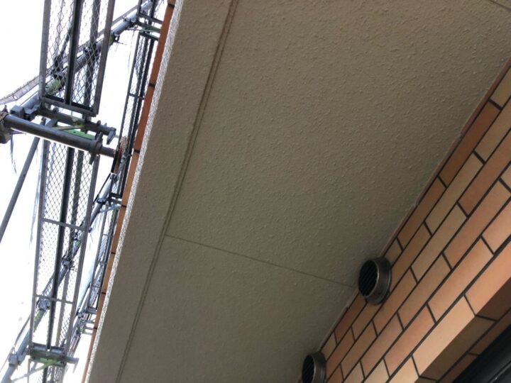上塗り材を塗布する工程です。これで塗装の工程は完了です。軒天/施工完了