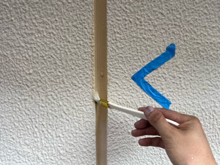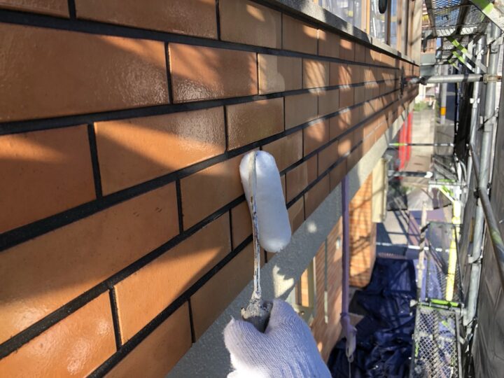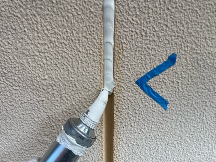 下地材とシーリング材の密着性を良くする為にプライマー施工をしています。シーリング/充填