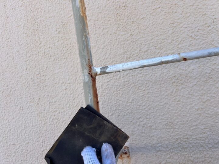 汚れ、サビ、旧塗膜等を落とし塗料の付着をよくするための作業を行いました。鉄部/錆止め