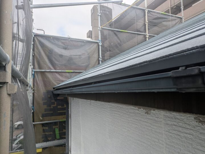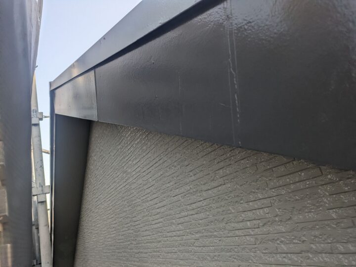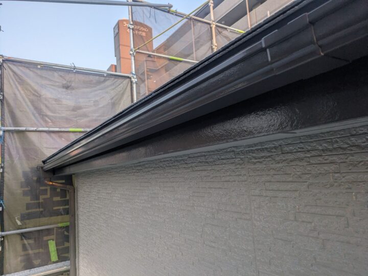 上塗り材を塗布する工程です。これで塗装の工程は完了です。破風板/施工完了
