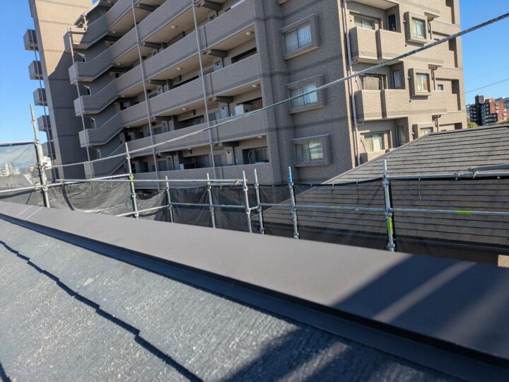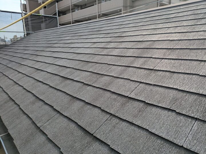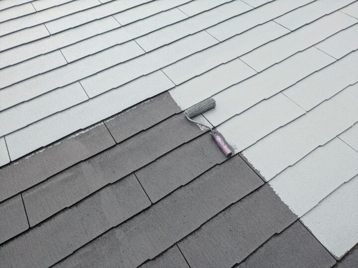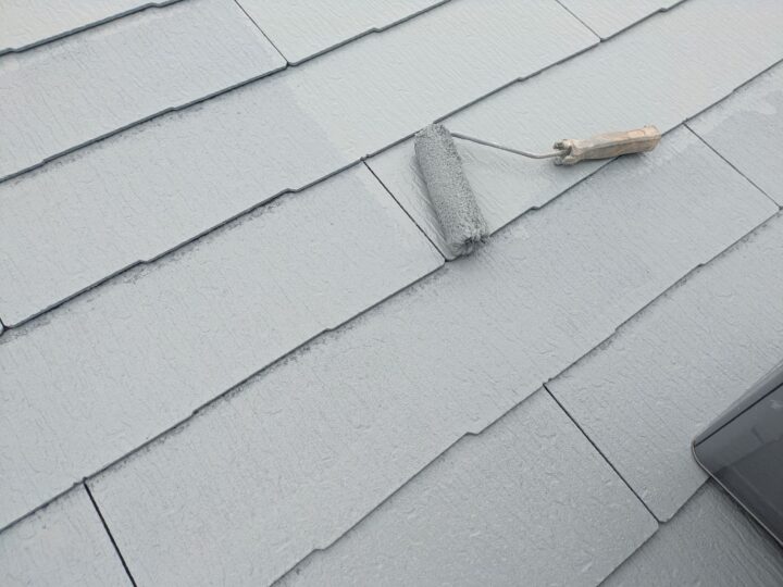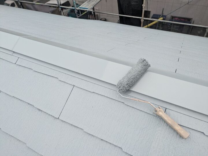 上塗り材を塗布する工程です。これで塗装の工程は完了です。屋根/施工完了