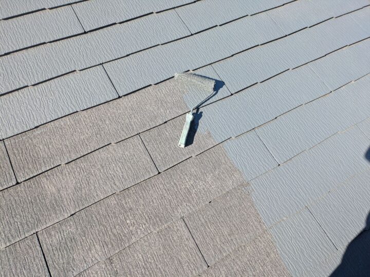塗装における最初の工程です。下塗り材には、上塗り材との密着を良くする役割があります。屋根/中塗り