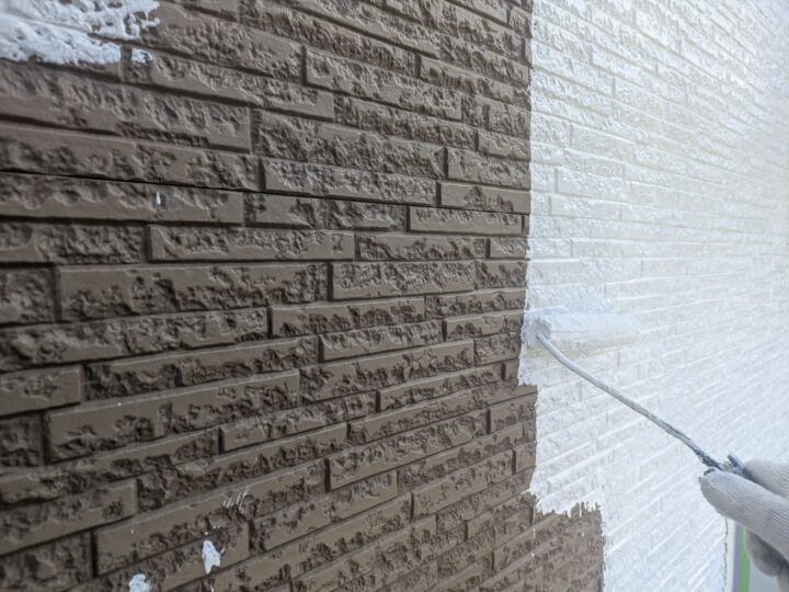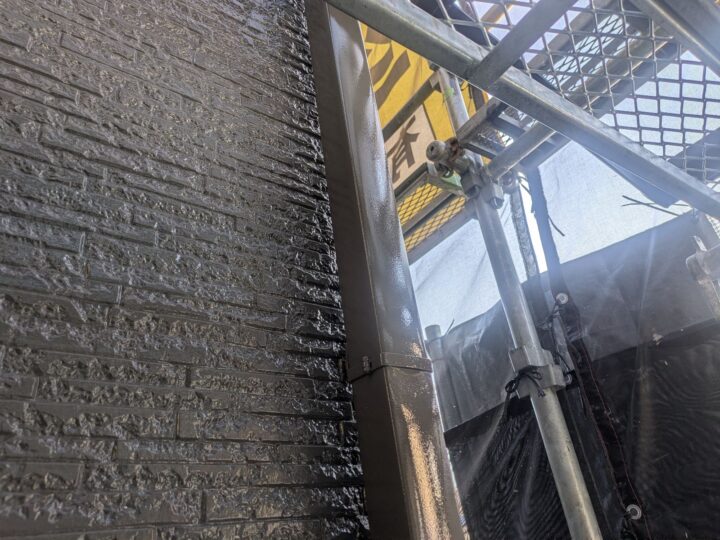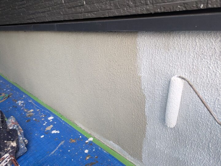 上塗り材を塗布する工程です。これで塗装の工程は完了です。外壁/施工完了