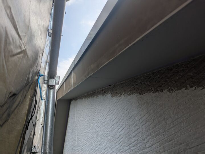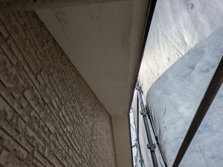 上塗り材を塗布する工程です。これで塗装の工程は完了です。軒天/施工前