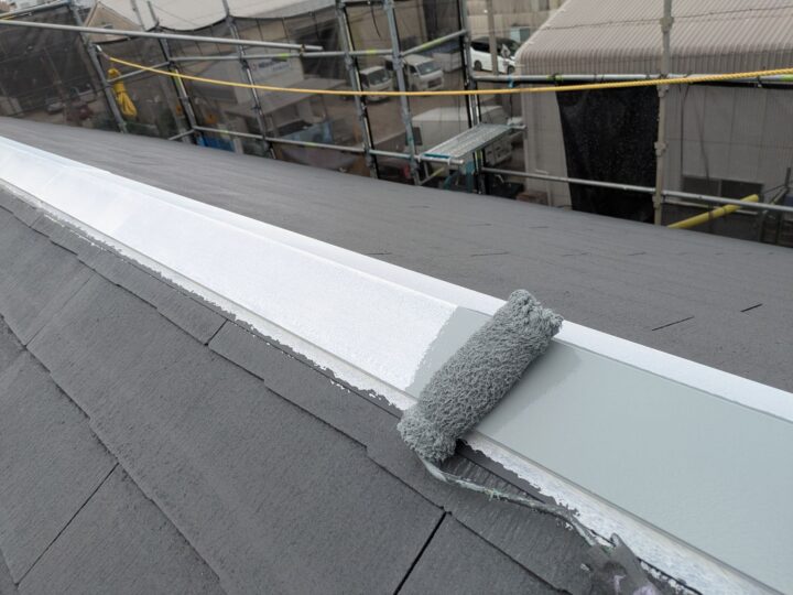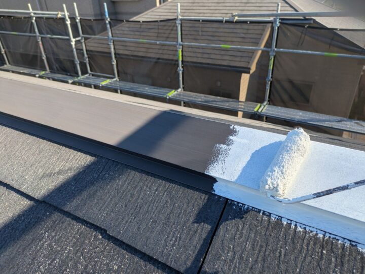 中塗り材を塗布する工程です。屋根板金/上塗り