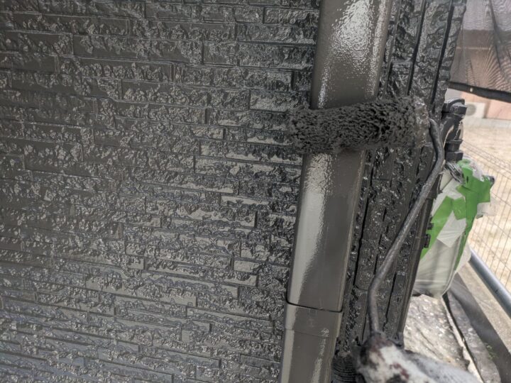 上塗り材を塗布する工程です。これで塗装の工程は完了です。竪樋/施工完了