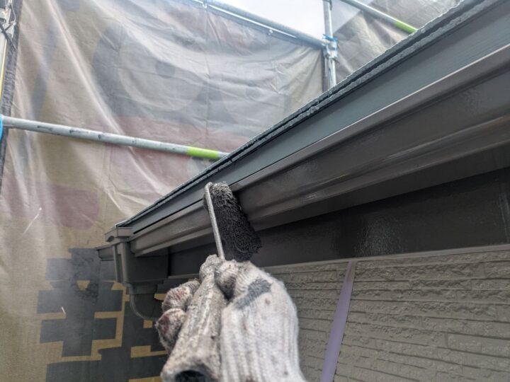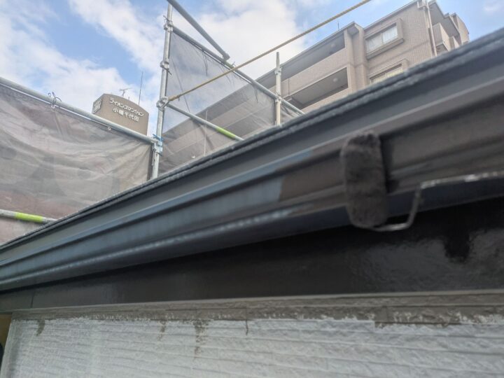 上塗り材を塗布する工程です。これで塗装の工程は完了です。軒樋/施工完了