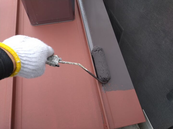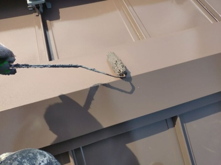 中塗り材を塗布する工程です。屋根板金/上塗り
