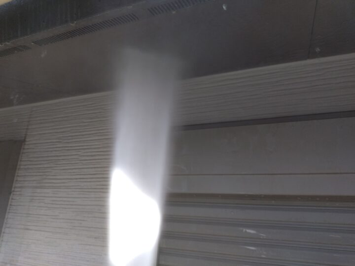 建物に付着した汚れや旧塗膜を落としました。軒天/中塗り