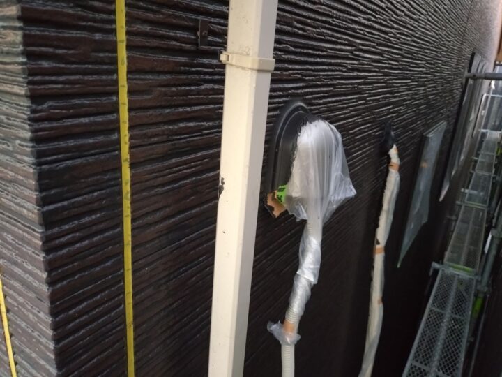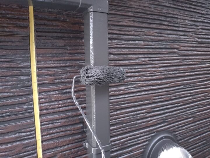 上塗り材を塗布する工程です。これで塗装の工程は完了です。竪樋/施工完了