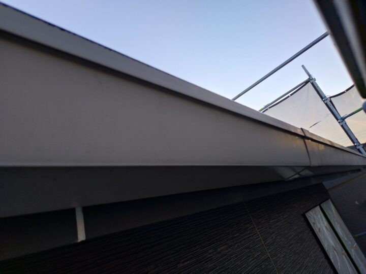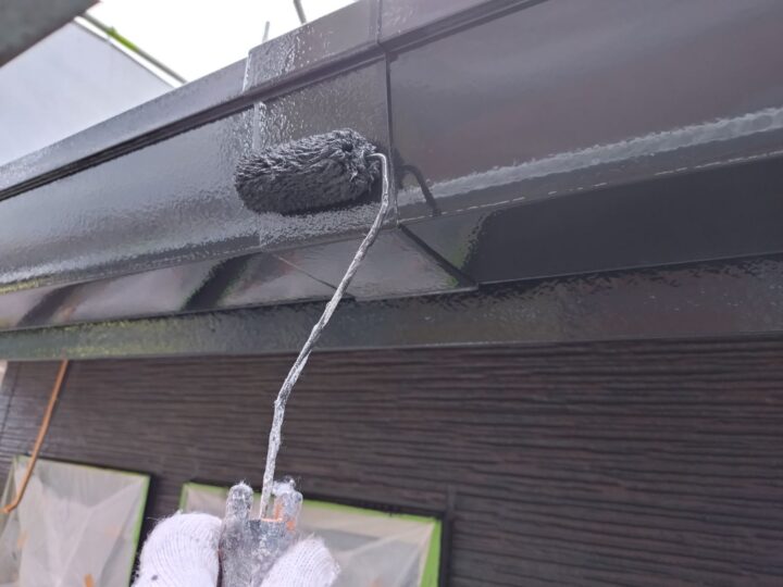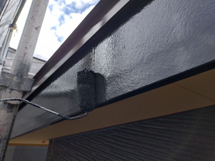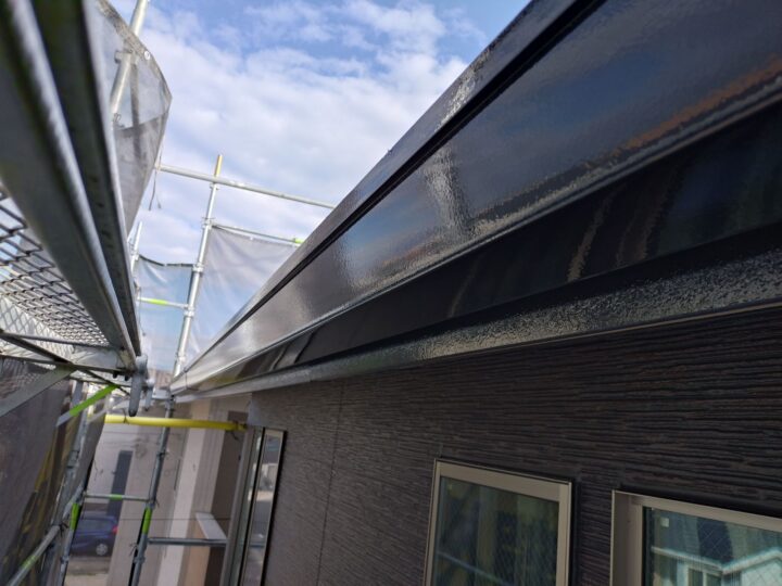 上塗り材を塗布する工程です。これで塗装の工程は完了です。軒樋/施工完了