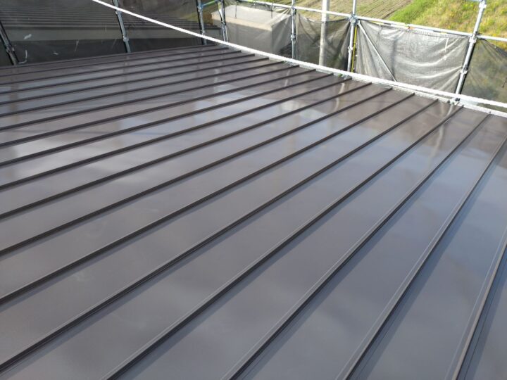 上塗り材を塗布する工程です。これで塗装の工程は完了です。屋根板金/施工完了