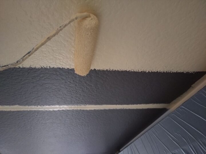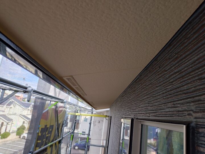 上塗り材を塗布する工程です。これで塗装の工程は完了です。軒天/施工完了