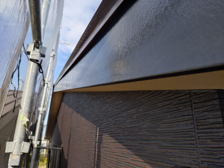 上塗り材を塗布する工程です。これで塗装の工程は完了です。破風板/施工完了
