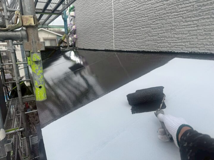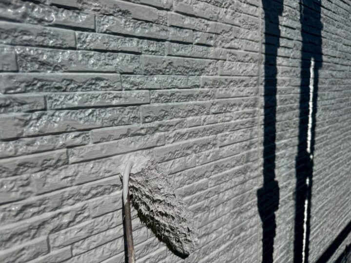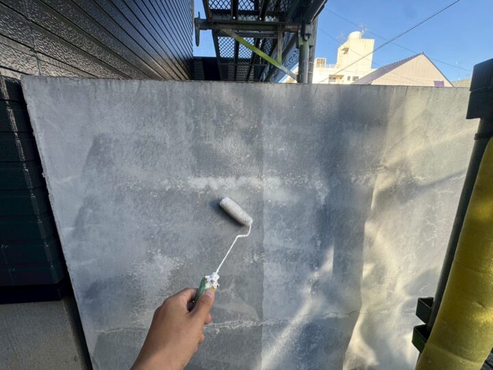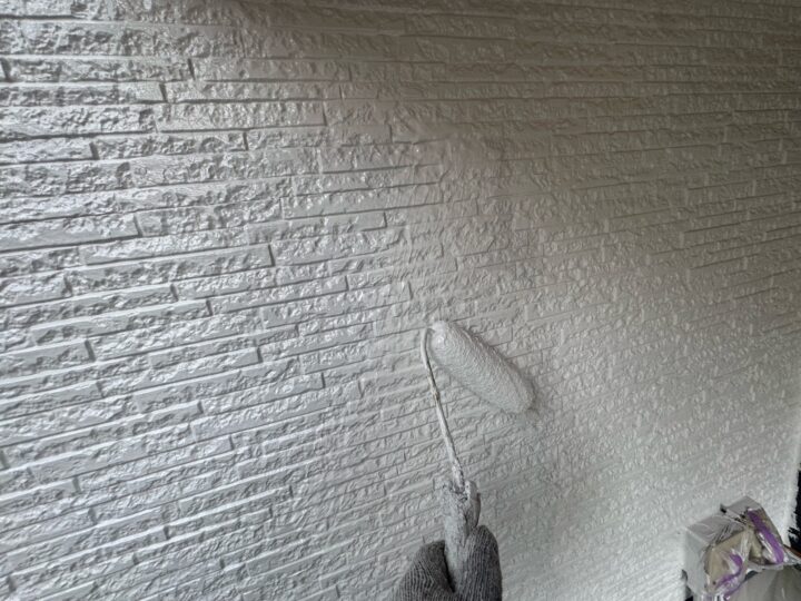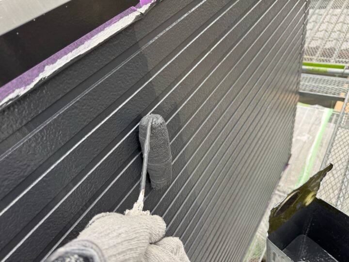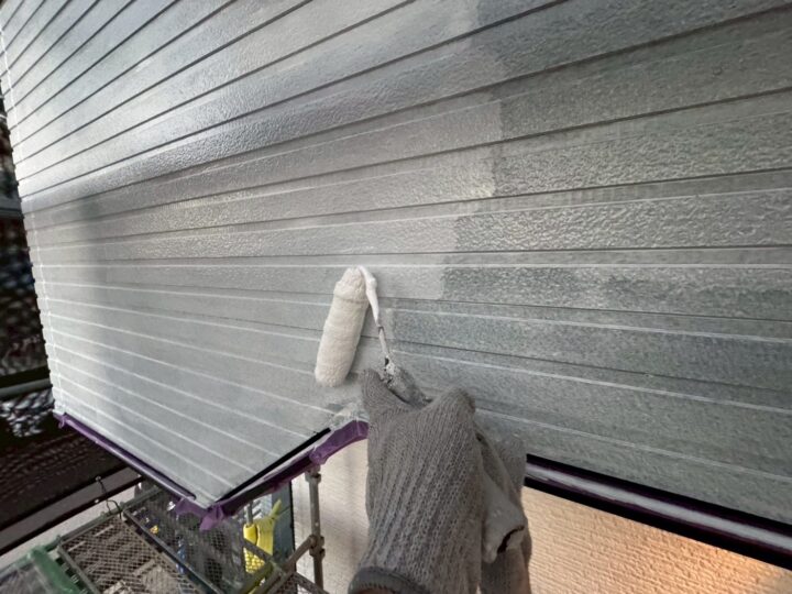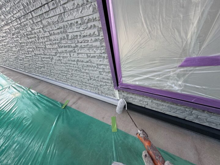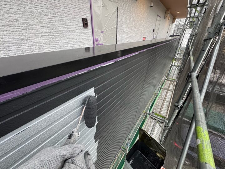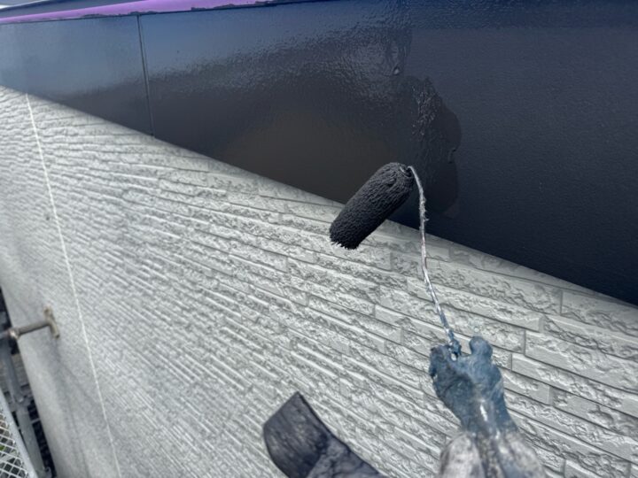 中塗り材を塗布する工程です。外壁アクセント/上塗り