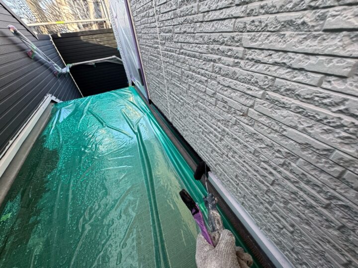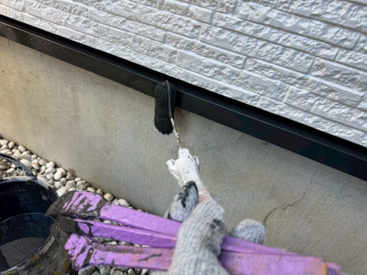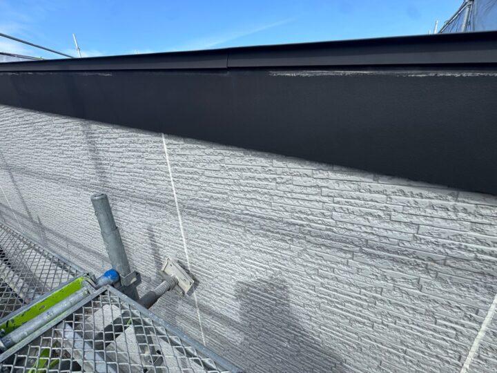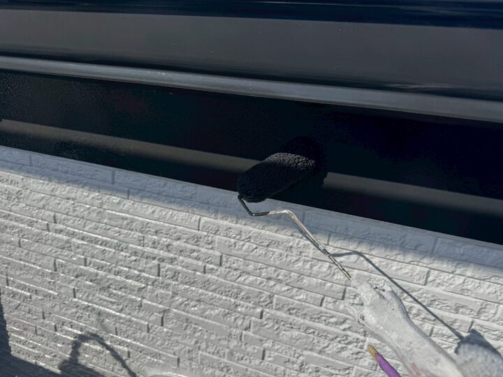 上塗り材を塗布する工程です。これで塗装の工程は完了です。水切り/施工完了