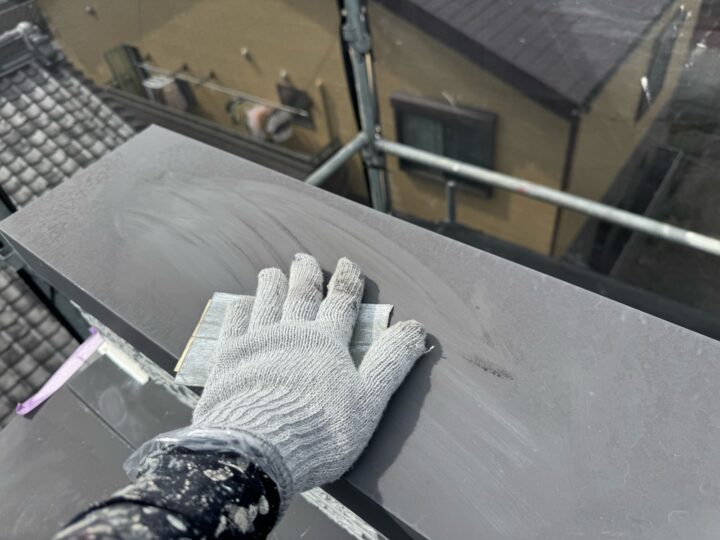 錆を防止・抑制するための工程です笠木/中塗り
