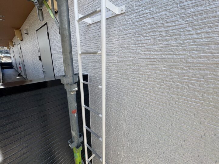 上塗り材を塗布する工程です。これで塗装の工程は完了です。梯子/施工完了