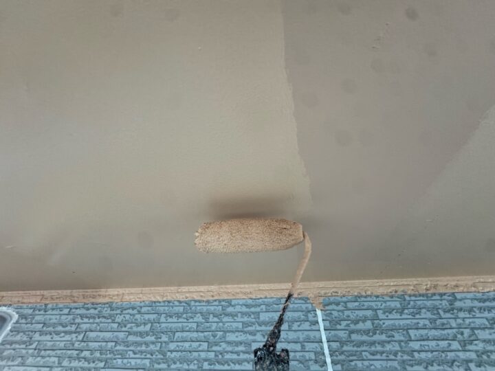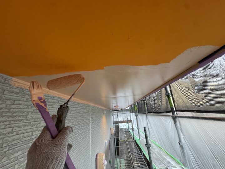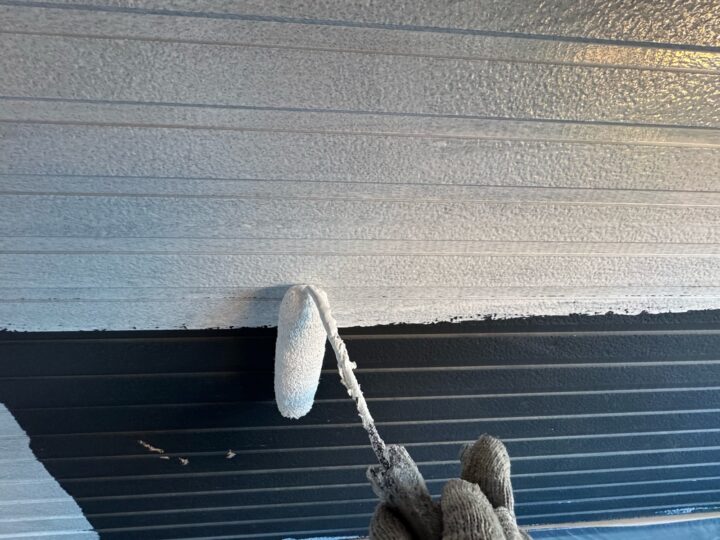 中塗り材を塗布する工程です。軒天/上塗り