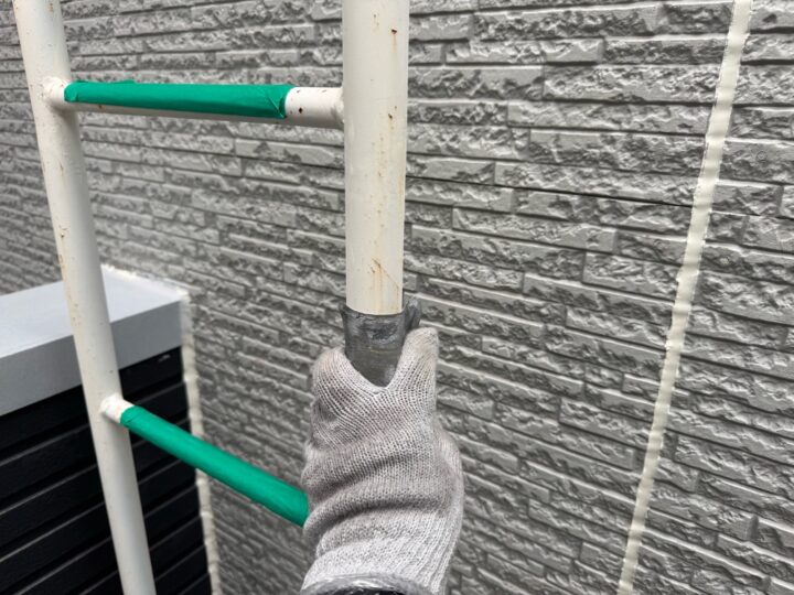 汚れ、サビ、旧塗膜等を落とし塗料の付着をよくするための作業を行いました。水切り/錆止め