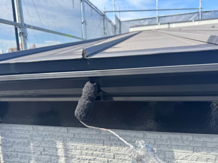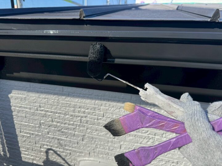 中塗り材を塗布する工程です。軒樋/上塗り