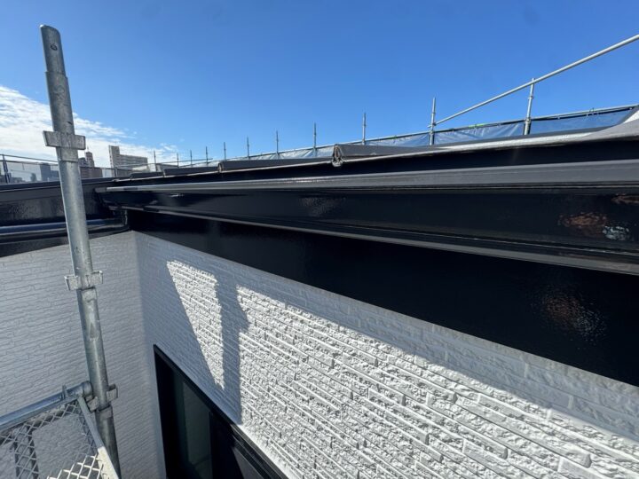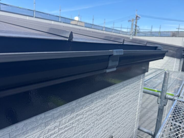上塗り材を塗布する工程です。これで塗装の工程は完了です。軒樋/施工完了