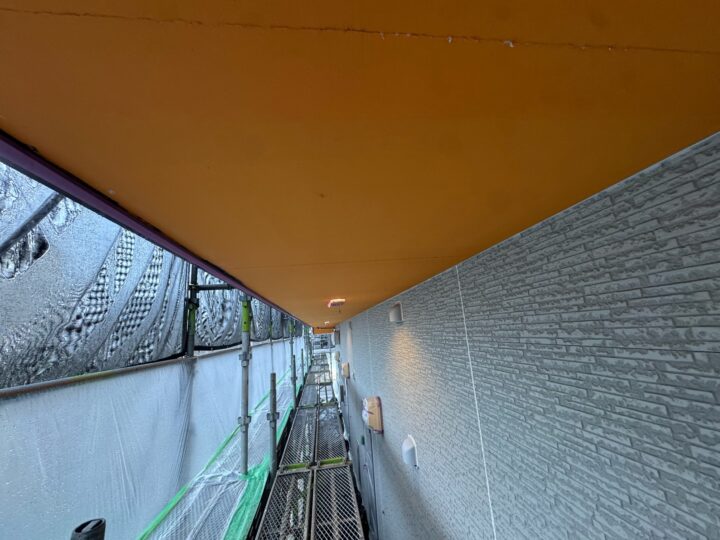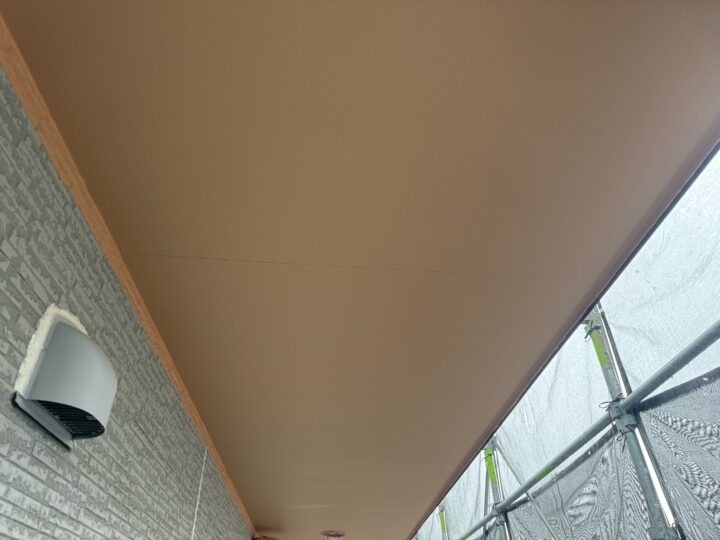 上塗り材を塗布する工程です。これで塗装の工程は完了です。軒天/施工完了