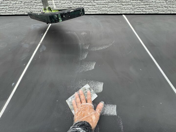 上塗り材を塗布する工程です。これで塗装の工程は完了です。ゴミ置き/施工完了