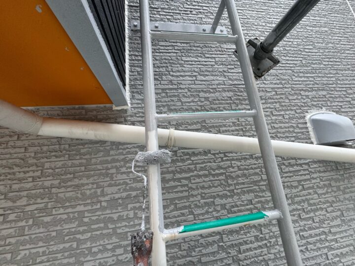中塗り材を塗布する工程です。梯子/上塗り