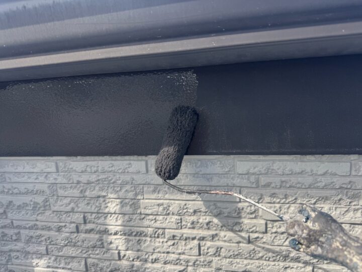 中塗り材を塗布する工程です。破風板/上塗り