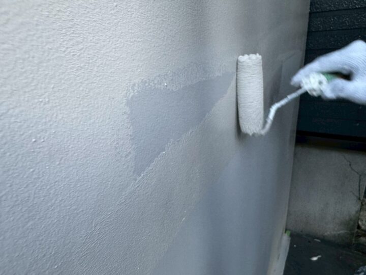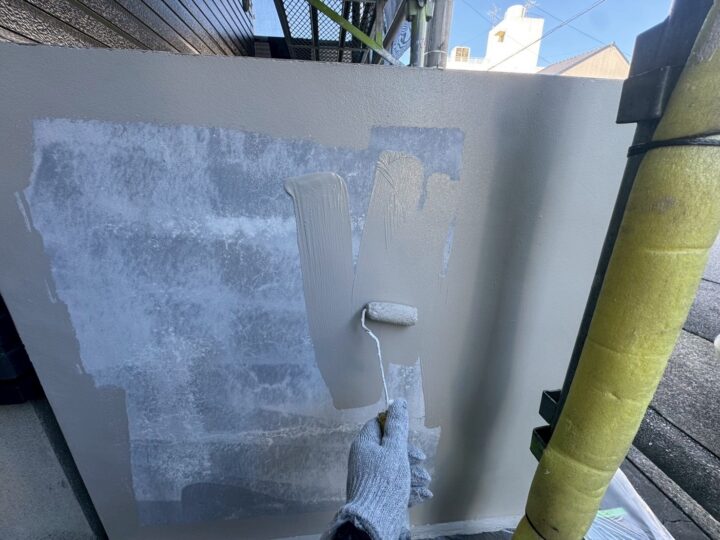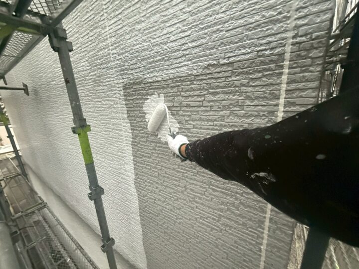 中塗り材を塗布する工程です。外壁/上塗り