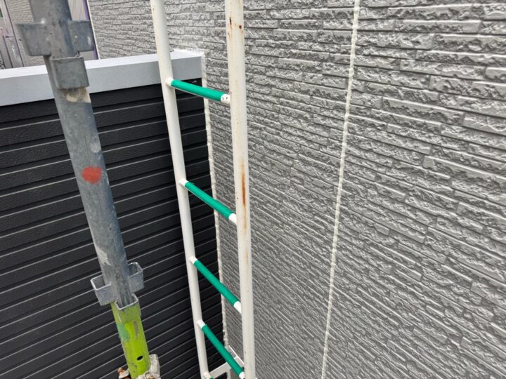 汚れ、サビ、旧塗膜等を落とし塗料の付着をよくするための作業を行いました。梯子/錆止め