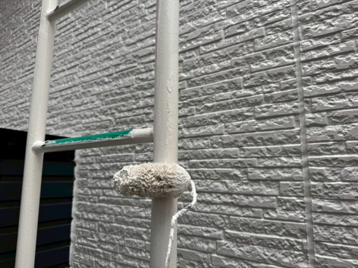 上塗り材を塗布する工程です。これで塗装の工程は完了です。外壁/施工完了