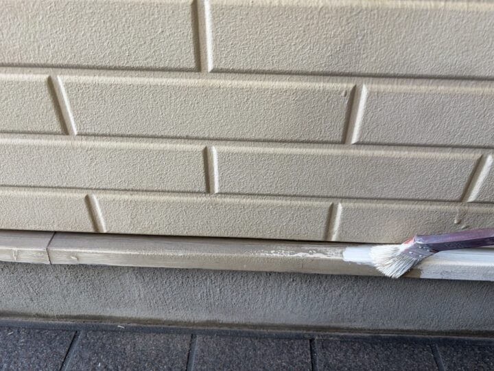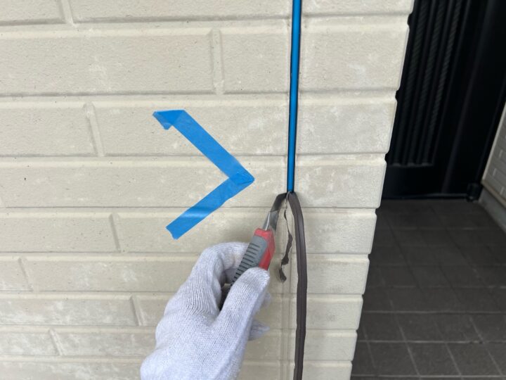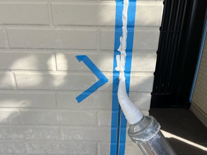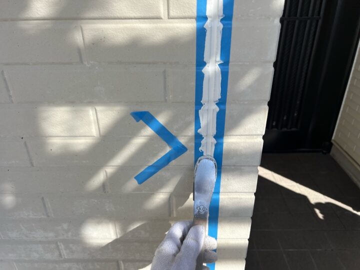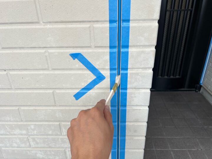 下地材とシーリング材の密着性を良くする為にプライマー施工をしています。シーリング/充填