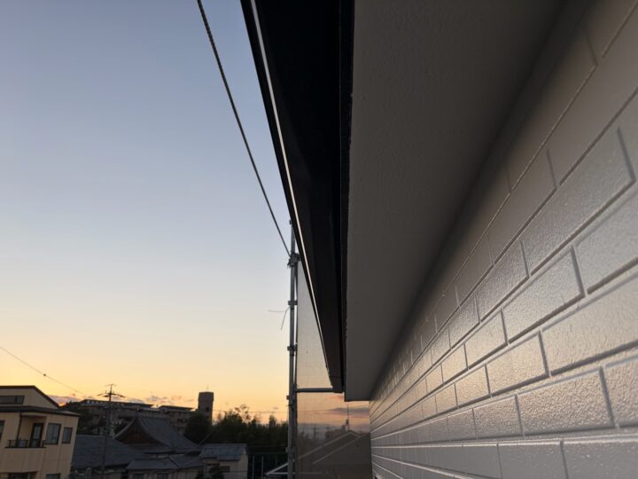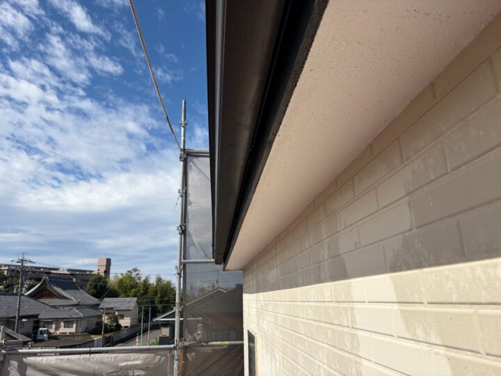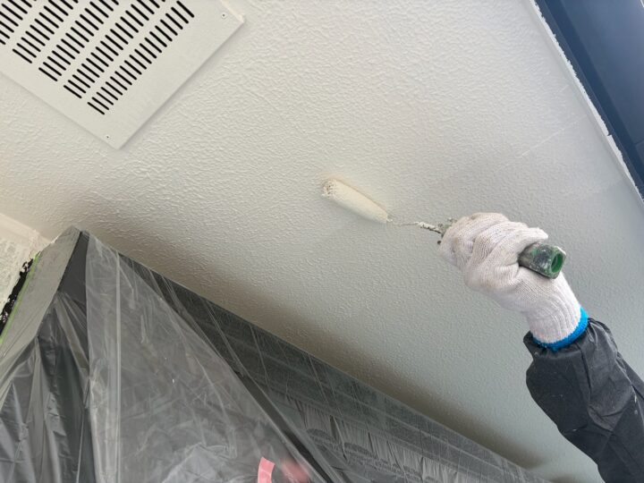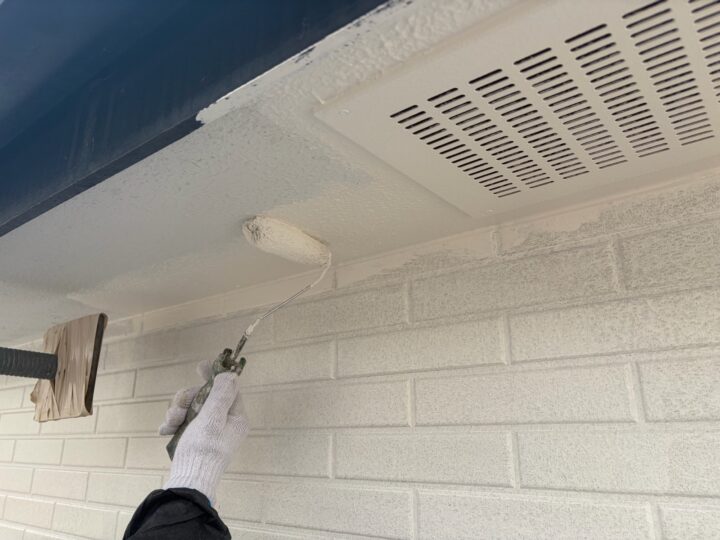 上塗り材を塗布する工程です。これで塗装の工程は完了です。軒天/施工完了