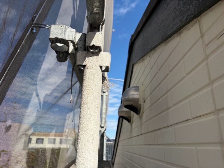 汚れ、サビ、旧塗膜等を落とし塗料の付着をよくするための作業を行いました。水切り/錆止め