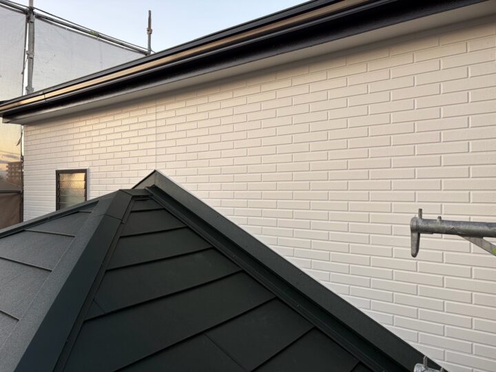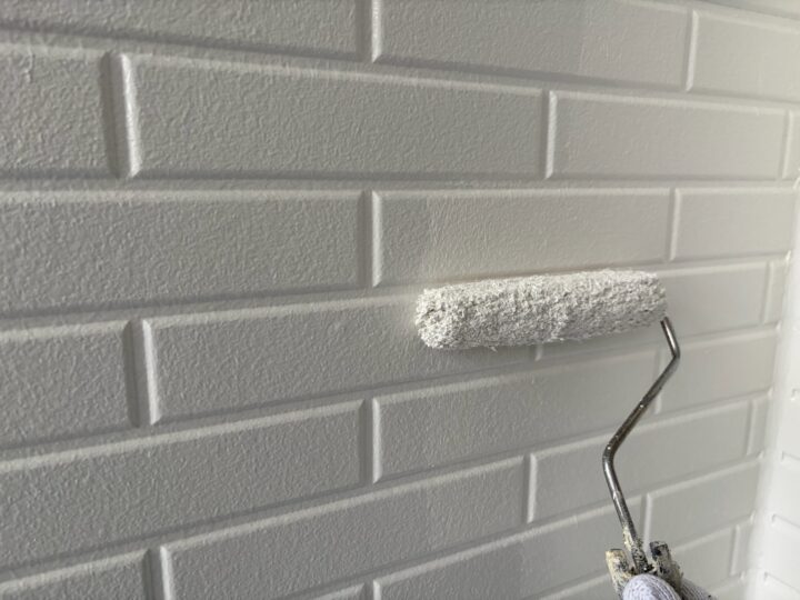 上塗り材を塗布する工程です。これで塗装の工程は完了です。外壁/施工完了