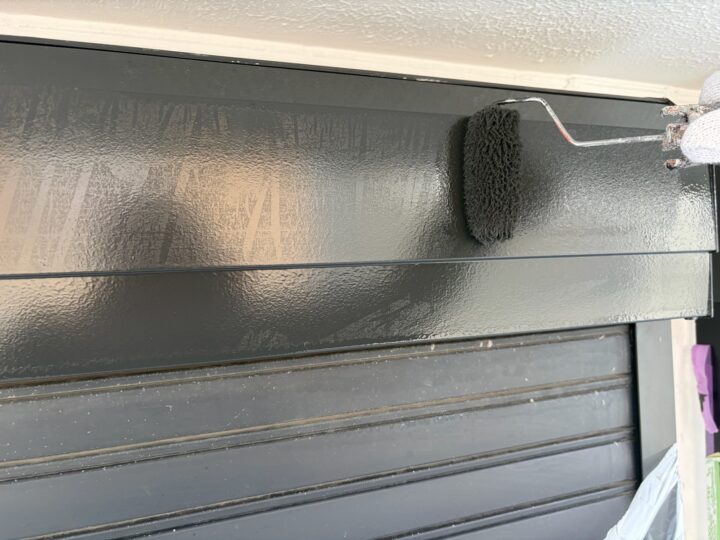 上塗り材を塗布する工程です。これで塗装の工程は完了です。シャッターボックス/施工完了