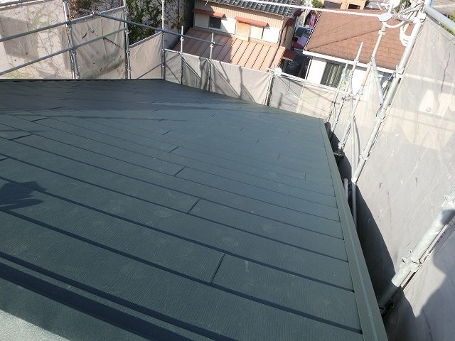 | 外壁使用塗料 | 屋根カバー工事 スーパーガルテクト 色:グリーン |