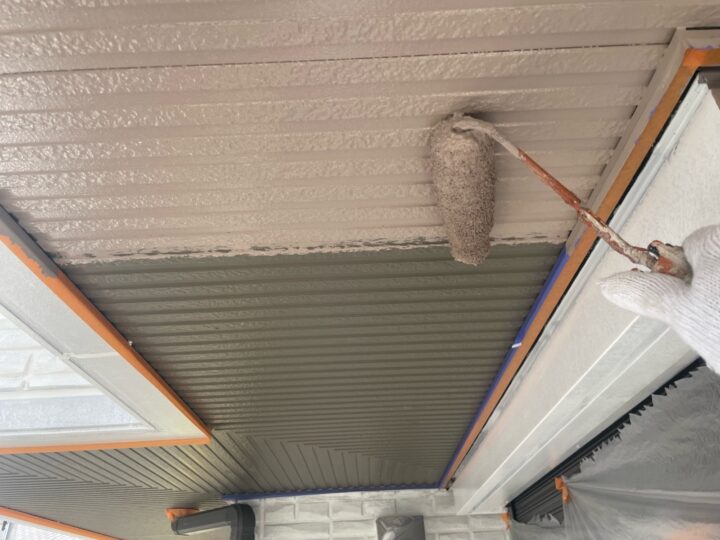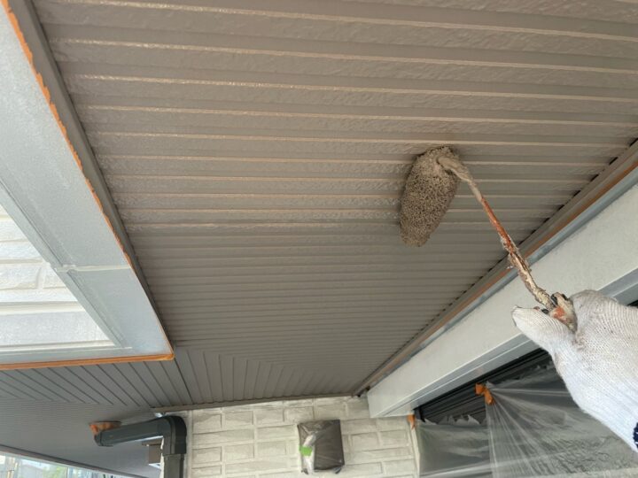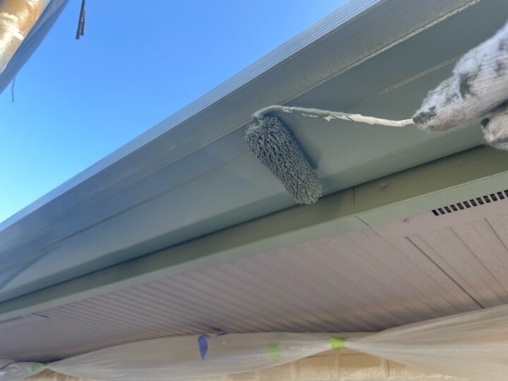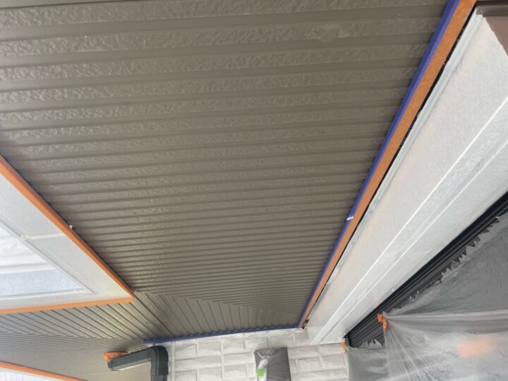 上塗り材を塗布する工程です。これで塗装の工程は完了です。軒天/施工前