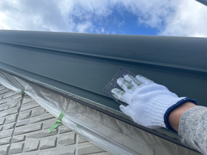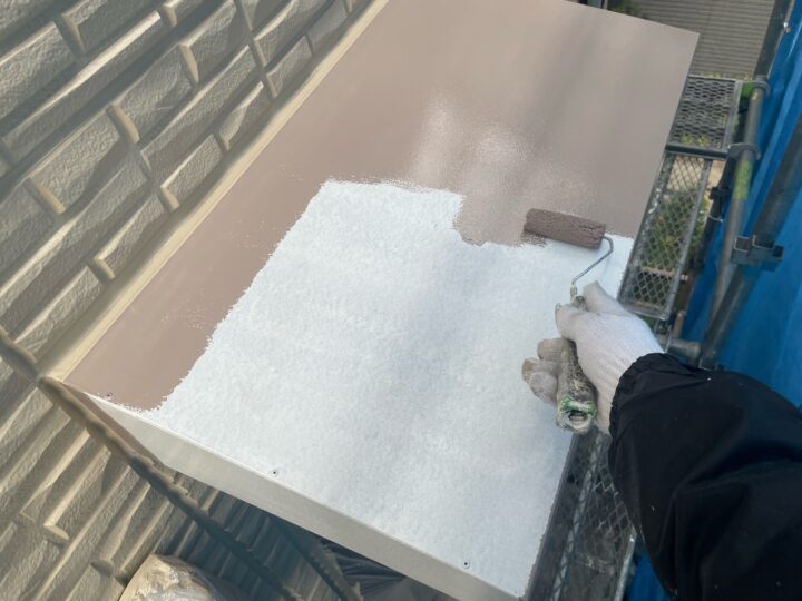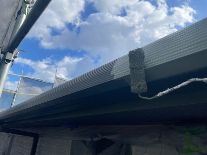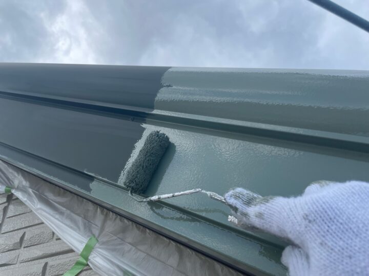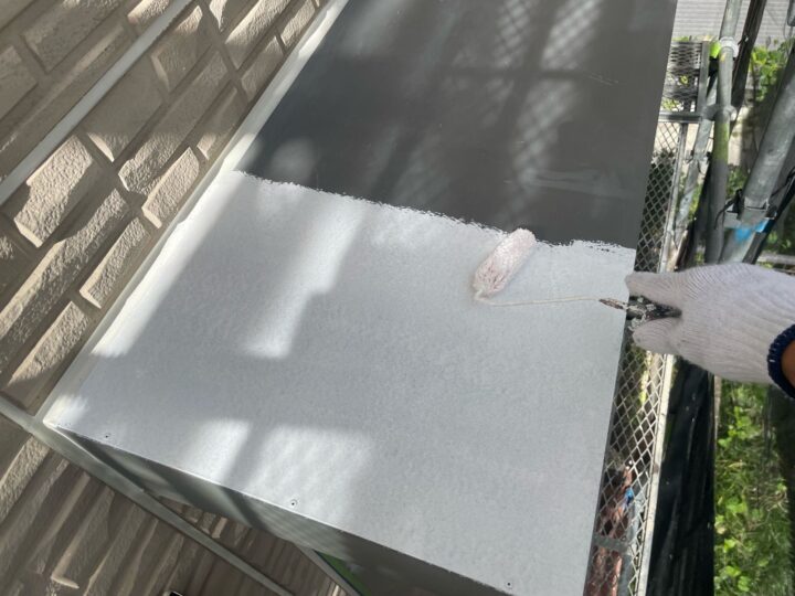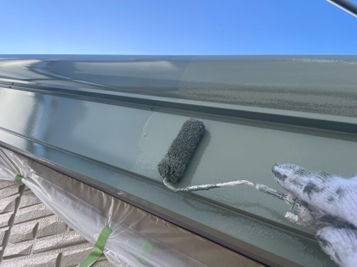 中塗り材を塗布する工程です。屋根板金/上塗り