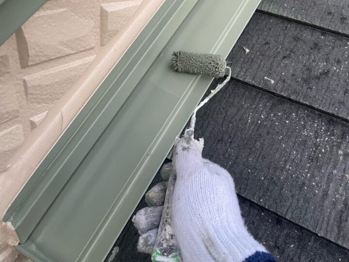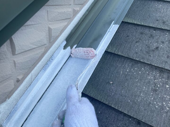 上塗り材を塗布する工程です。これで塗装の工程は完了です。軒樋/施工前
