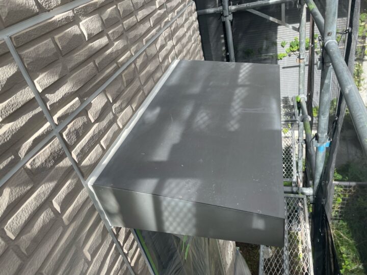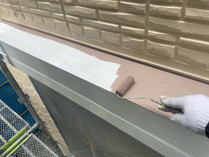 上塗り材を塗布する工程です。これで塗装の工程は完了です。庇/施工前